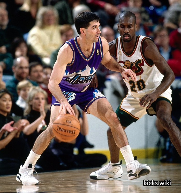 当年助攻王斯托克顿曾在正式比赛中使用了zoom challenge,白色款和他低调的球风极为合衬。鲜为人提及的是,1991年的探花秀、当年著名的流浪球员比利.欧文斯也曾有过上脚。