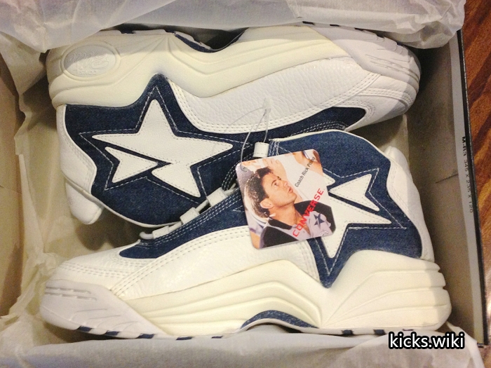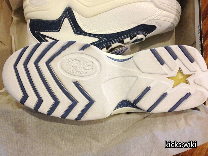 converse blue,1996年的篮球鞋,专为肯塔基大学野猫队推出的团队款产品。皮革材质搭配丹宁布鞋面,PU聚氨酯中底,后掌内置REACT一代油包缓震,当年国内曾有发售。96年Rick Pitino里克.皮蒂诺任职肯塔基大学主教练,率队夺得NCAA冠军,这次夺冠也是肯塔基大学1978年以后的首次夺冠。这双鞋以野猫队昵称big blue为主题,蓝色丹宁布的使用显得十分特别。