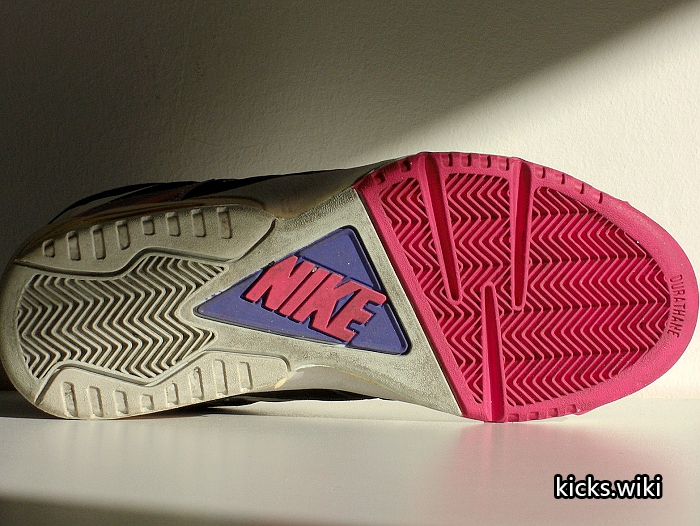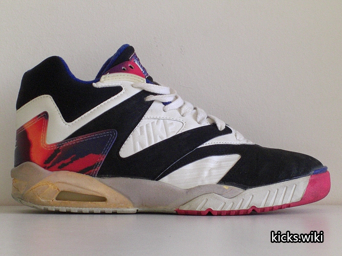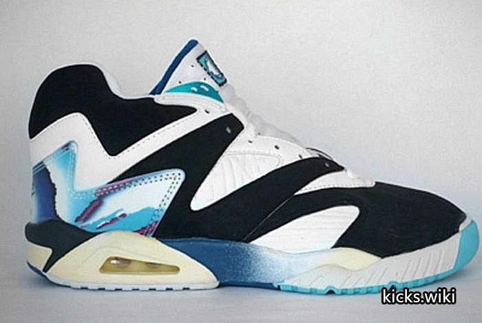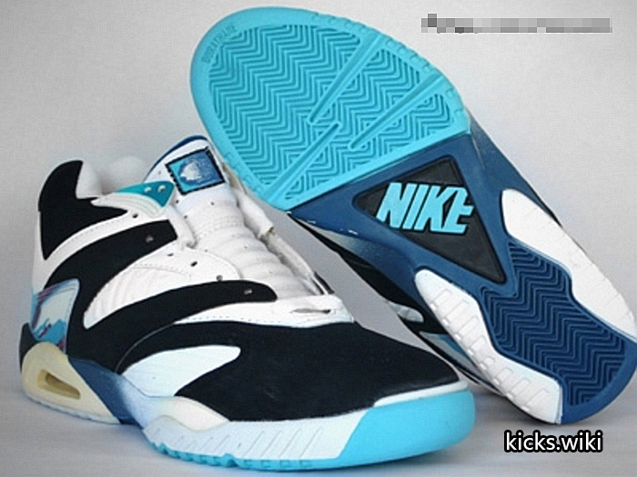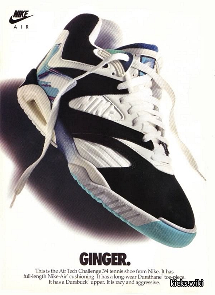 air tech challenge IV,1991年的网球鞋,Andre Agassi安德烈.阿加西的专属款式。皮质鞋面,PU聚氨酯中底,前掌内置air sole气垫,后掌可视air sole气垫,durathane硬质橡胶外底,中底外底套用了前代atc III的设计。延续atc系列一贯的彩色搭配,取消前三代通用的鞋头补强,整体外观线条明显带有同年aj6的设计风格。重要的是,这是atc系列开始淡化swoosh设计的一款,在耐克历史中这可以视为代言人地位的重要体现。特别要提及的是,当年帮主和皮二哥都曾上脚这双网球鞋,为其跨界镀金。air tech challenge IV在2016年迎来首次复刻,整体还原度高。