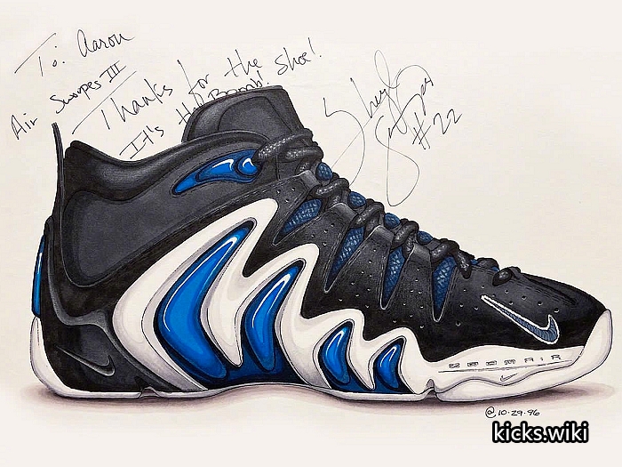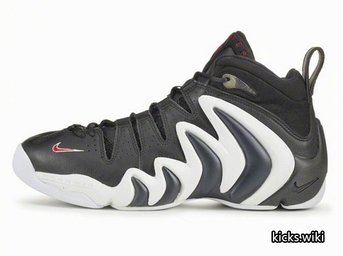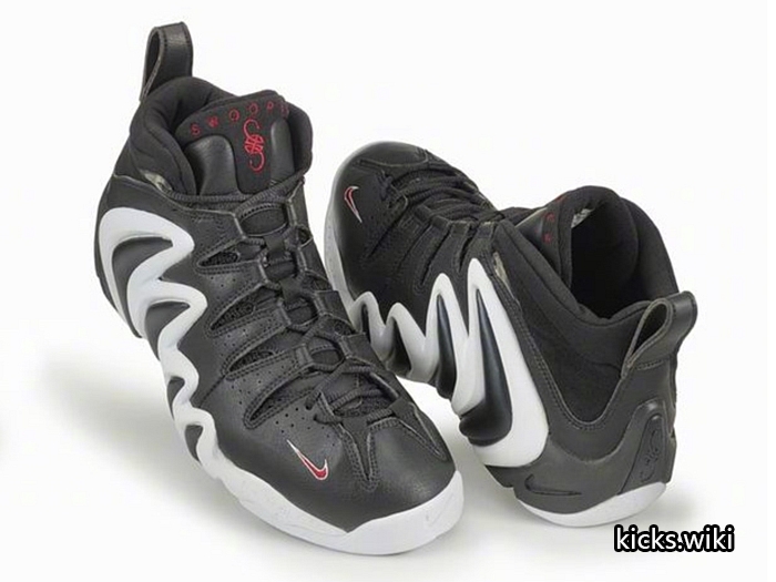 wmns air swoopes zoom(131621),1997年的女子篮球鞋,WNBA球星Sheryl Swoopes谢莉尔.斯沃普斯的第三代签名鞋。整体最大亮点是从中底延伸到鞋面的支撑条,以及非常利于弯曲的鞋面设计。半掌内靴,全长phylon中底,前后掌分别内置zoom气垫,同时还带有斯沃普斯的个人logo。斯沃普斯被称为“女乔丹”,曾三次获得奥运金牌、四次WNBA总冠军、三次常规赛MVP。